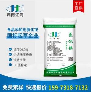 食品級(jí)氯化銨是江海公司潛心研究,在多年提純精制的經(jīng)驗(yàn)基礎(chǔ)上,通過(guò)特殊的結(jié)晶工藝精制而成,具有純度高、晶形規(guī)整、重金屬離子極低的特點(diǎn),被廣泛的應(yīng)用在酵母養(yǎng)料、面團(tuán)改性、醬油催化、皮蛋上色、咸甘草糖制作等領(lǐng)域。同時(shí)近期發(fā)現(xiàn)在高品質(zhì)獸藥中食品級(jí)氯化銨同樣能起到很好的作用。 產(chǎn)品包裝 內(nèi)塑外編或按客戶(hù)要求 產(chǎn)品規(guī)格 25或50kg/袋 ...